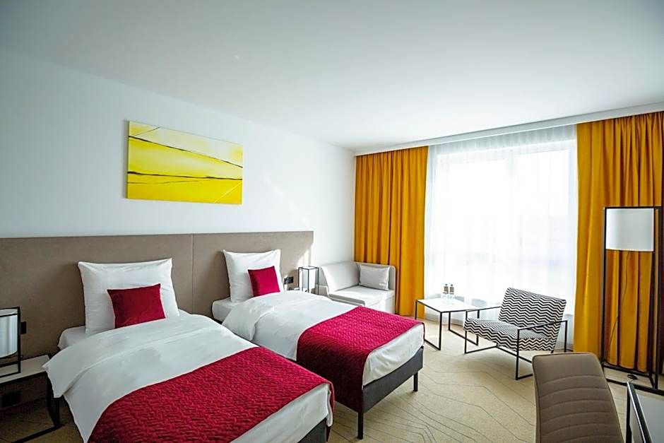 This modern single room features free WiFi and air-conditioning, a 35 in wide bed, as well as a fold-out sofa, a desk, a coffee table, a flat-screen TV with cable channels and coffee and tea making set.